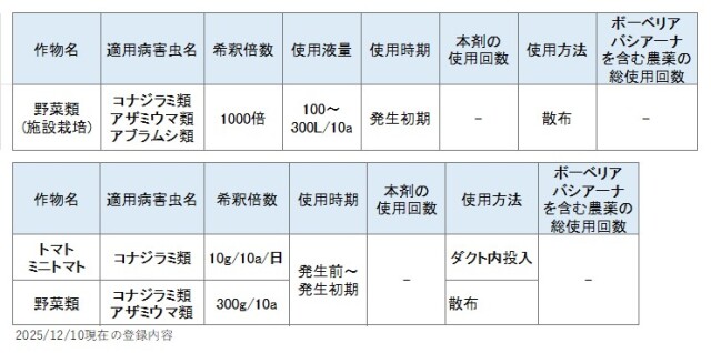 2025年12月10日付で野菜類、コナジラミ類・コナジラミ類に300g/10aの散布が追加登録されました。