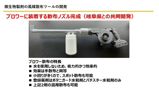 - 本剤の有効成分は生菌であるので、散布液調製後はそのまま放置せず、出来るだけ速やかに散布すること。