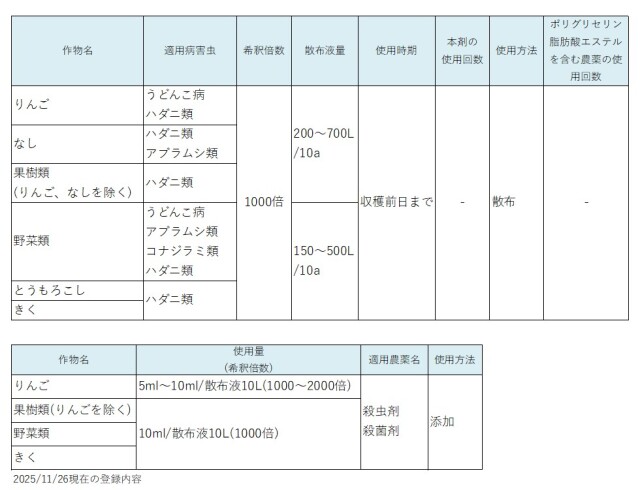 2025/11/26付で、きく;殺虫剤・殺菌剤に添加 が追加されました。