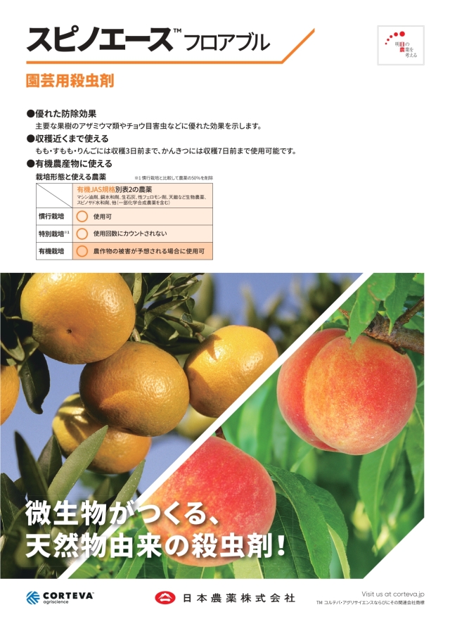 スピノエースフロアブルは有機農産物に使えます。