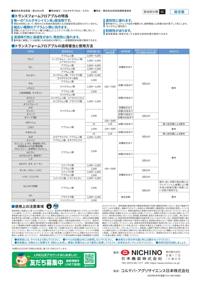 ☆ミツバチに対して影響があるので、以下のことに注意してください。