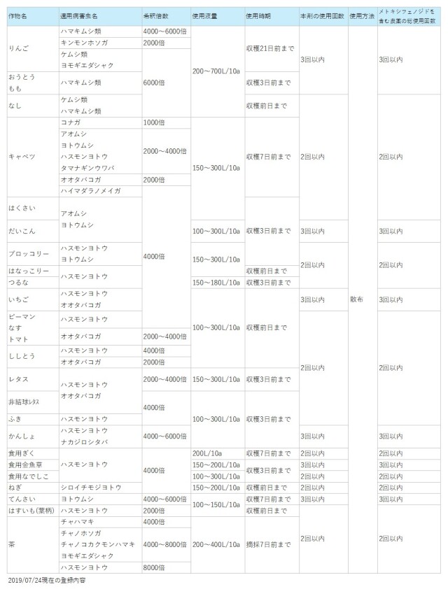 適用害虫と使用方法