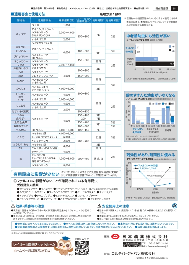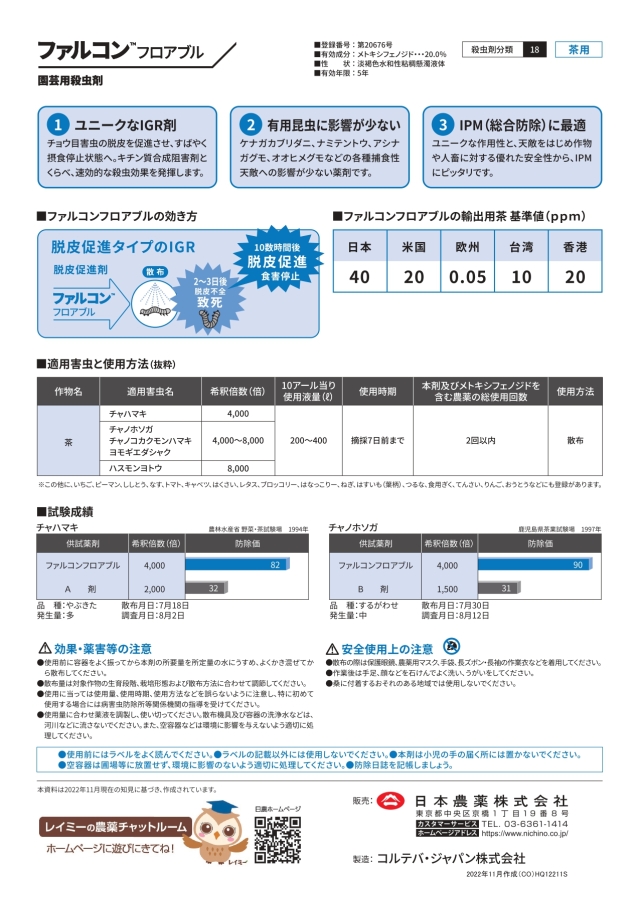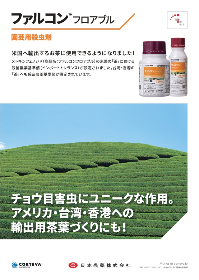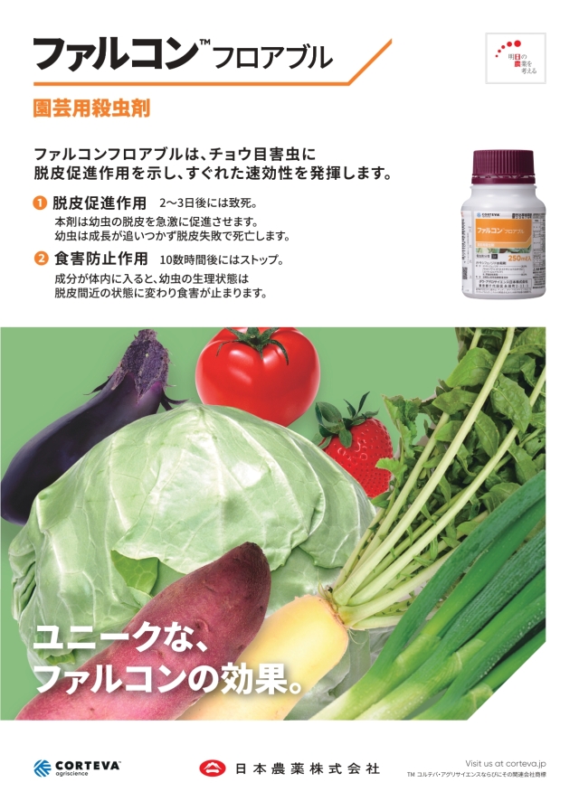 ファルコンフロアブルは、チョウ目害虫に脱皮促進作用を示し、優れた即効性を発揮します。