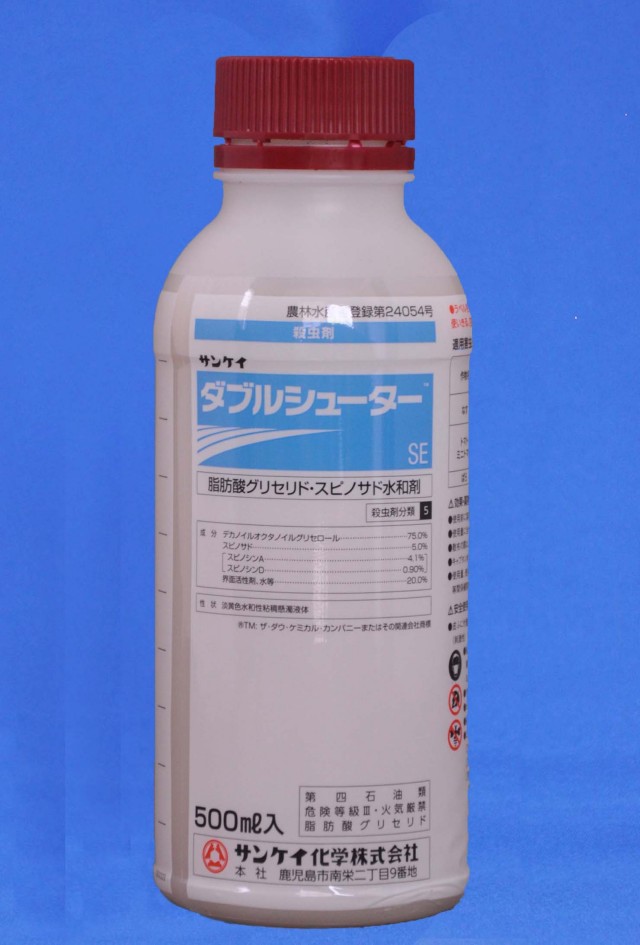 ・有効成分(スピノサド、脂肪酸グリセリド)の単独使用では低活性の害虫も、2成分の相乗効果で優れた活性と安定した効き目。